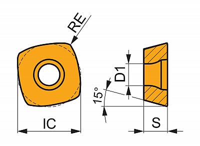 M8325 сплав с PVD покрытием, субстрат WC-(Ti, Ta, Nb)C-Co, применение по ISO P20-P40 для обработки заготовок из конструкционных сталей с высокоподачными фрезами SZD07