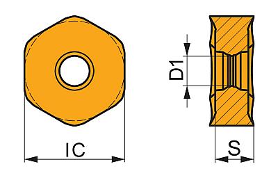 Двухсторонняя пластина для фрезерования HNGX 0906, шестигранная для максимальной глубины резания 5.0 мм, с мм радиусом, точностью ISO G и M геометрией с закругленными режущими кромками и фаской.