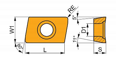 Односторонняя пластина для фрезерования XPHT 1604 со стружколомающей геометрией, 80° ромбическая для максимальной глубины резания 15.0 мм, с 1.2 мм радиусом, точностью ISO H с закругленными режущими кромками и фаской, 8230 сплав с PVD покрытием, мелкозернистый субстрат WC-Co, применение по ISO P20-P40 и M20-M35 для обработки заготовок из конструкционных сталей и нержавеющих сталей с фрезами для обработки фасок J(T)-SXP16