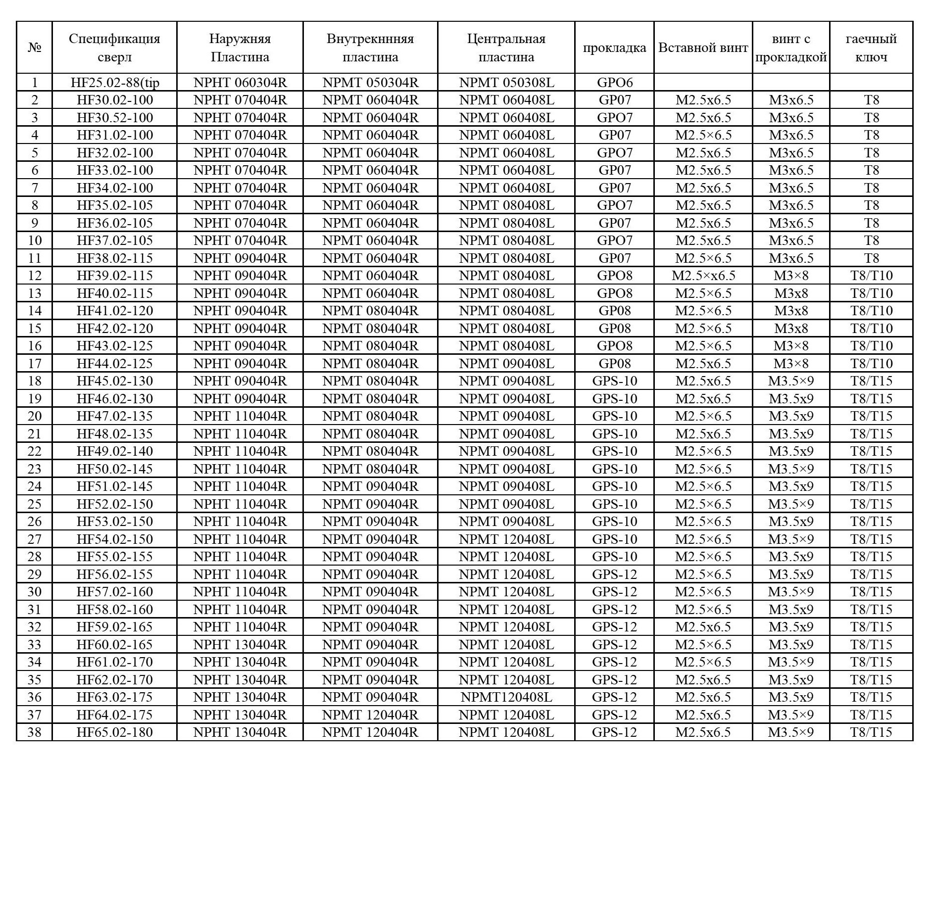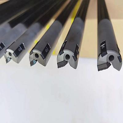Треугольные пластины имеют 3 режущие кромки. Стружколомы с положительным передним углом и геометрия разделения стружки позволяют использовать скорость подачи в 3-4 раза выше, чем у традиционных ружейных сверл. Они изготовлены из микрозернистого карбида и доступны с несколькими износостойкими покрытиями PVD.