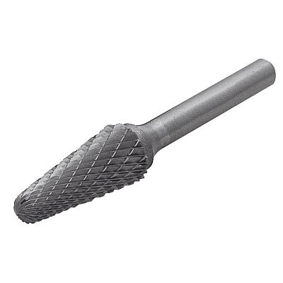 Твердосплавная бор-фреза сфероконическая Тип L. Размеры : диаметр рабочей части 6 мм, диаметр хвостовика 6 мм, длина рабочей части 16 мм, длина хвостовика 45 мм. Двойная насечка.