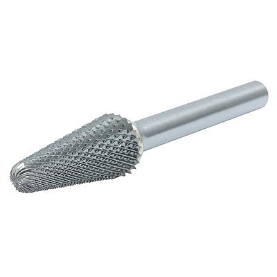 Твердосплавная бор-фреза сфероконическая Тип L. Размеры : диаметр рабочей части 6 мм, диаметр хвостовика 6 мм, длина рабочей части 16 мм, длина хвостовика 45 мм. Алмазная насечка.