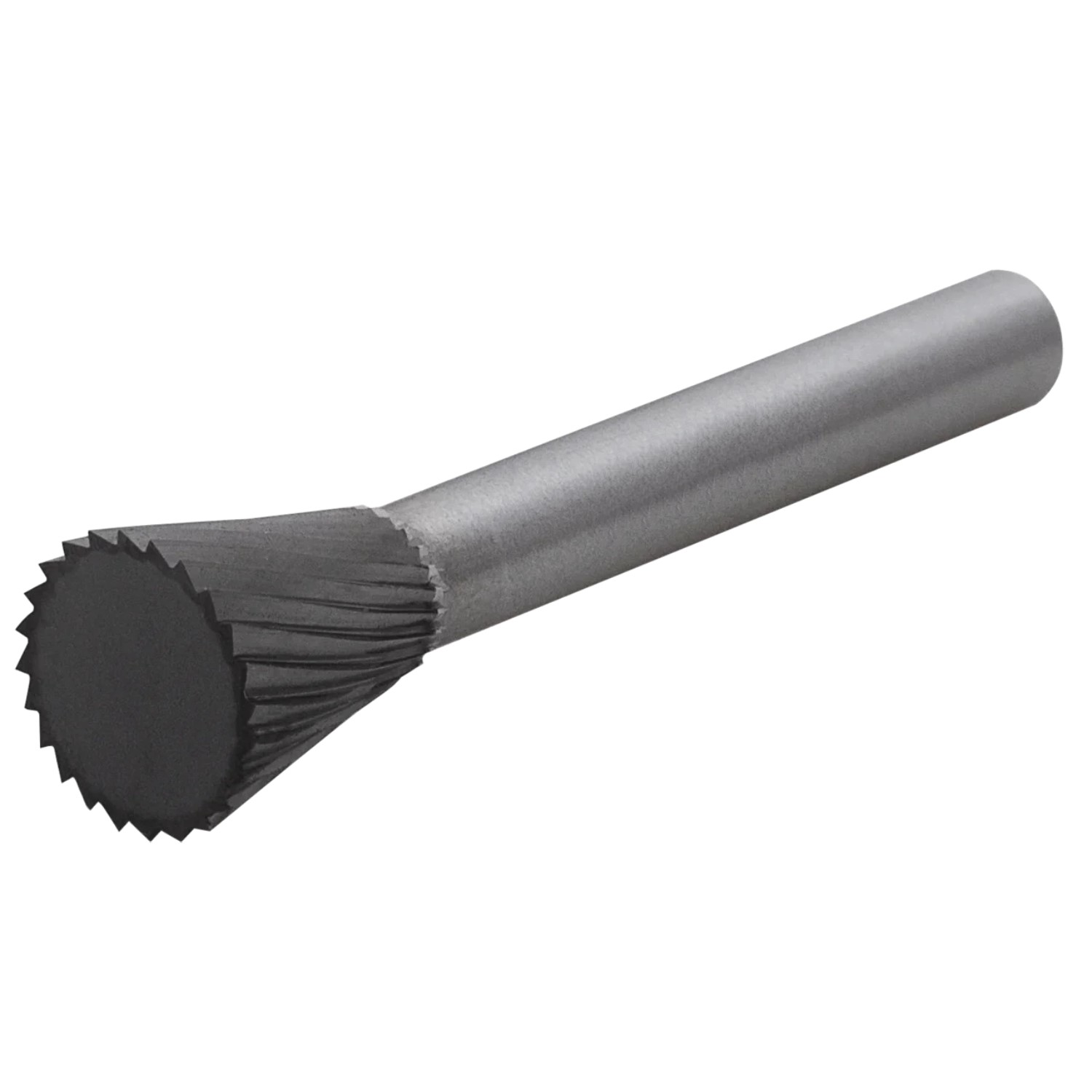 Твердосплавная бор-фреза обратный конус Тип N . Размеры : диаметр рабочей части 10 мм, диаметр хвостовика 6 мм, длина рабочей части 10 мм, длина хвостовика 45 мм. Глубокая одинарная насечка.